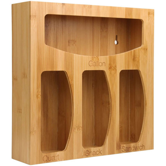 HANGABLE DESIGN- The hole reserved at the back of the ziplock bags organizer allows you to wall mount on the kitchen wall, which is easier to take and saves drawer space, avoid bending over your waist! The container is also lightweight and portable, making it perfect for picnics, camping trips, and other on-the-go activities. Plus, its sleek and modern design will fit any kitchen decor.